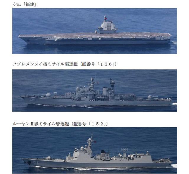 这也是日本自卫队首次在海上发现福建舰的身影。