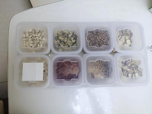 有了食品留样盒,汤料、花茶收纳得规整有序,再也不用为了找一种汤料而拆开一堆小袋子。