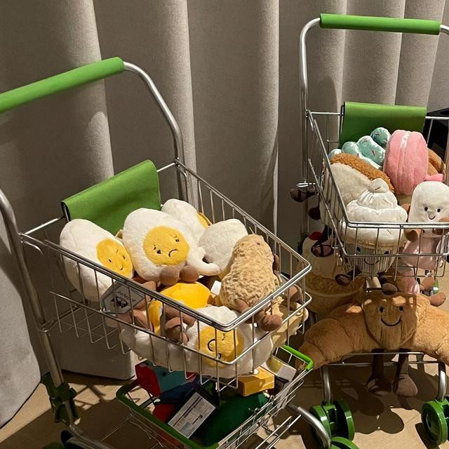 装饰后的购物车成了娃娃们的梦幻小窝,既实用又充满童趣,成为家里一道独特的风景线,一物多用简直太赞啦。