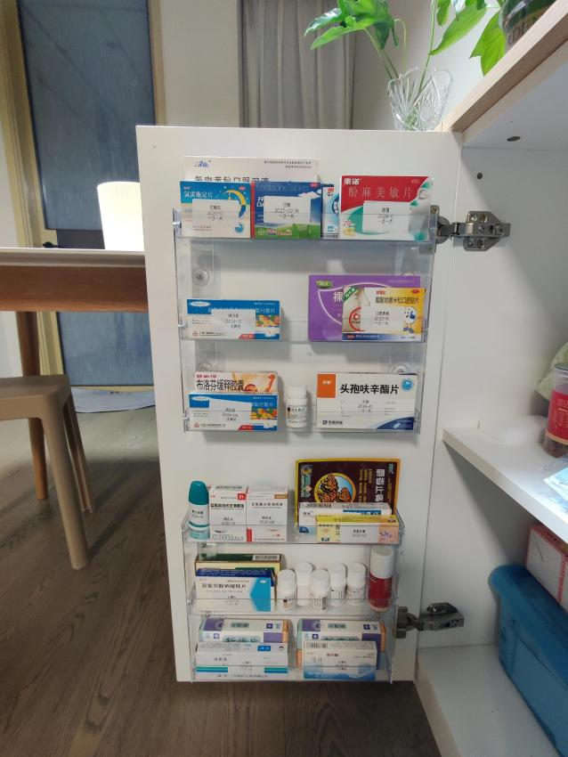 将药品有序放入展示架,安装在柜门内侧,不占空间又方便拿取。