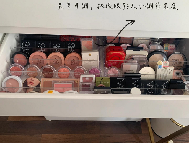 分隔板可以根据存放物品的大小,自由调节格子的宽度,比如较大的物品就把格子调宽些,小物件就调窄些。