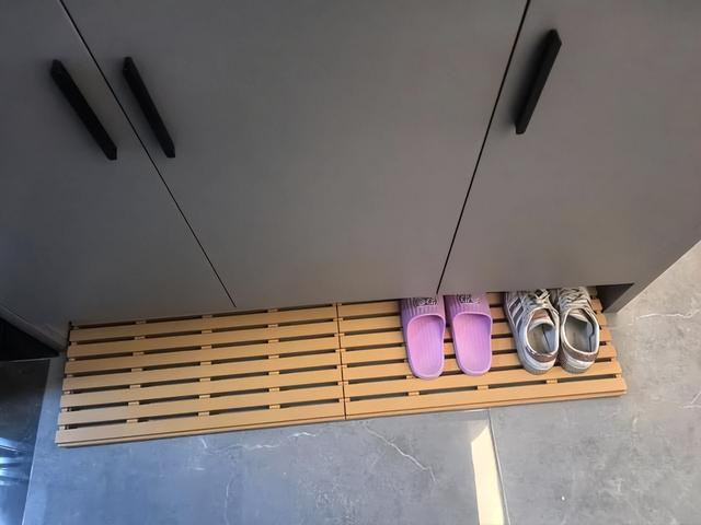 悬空鞋柜底部虽然可以随意把鞋子踢进去,但是每次穿的时候还要弯腰到鞋柜底下找,实在麻烦。
